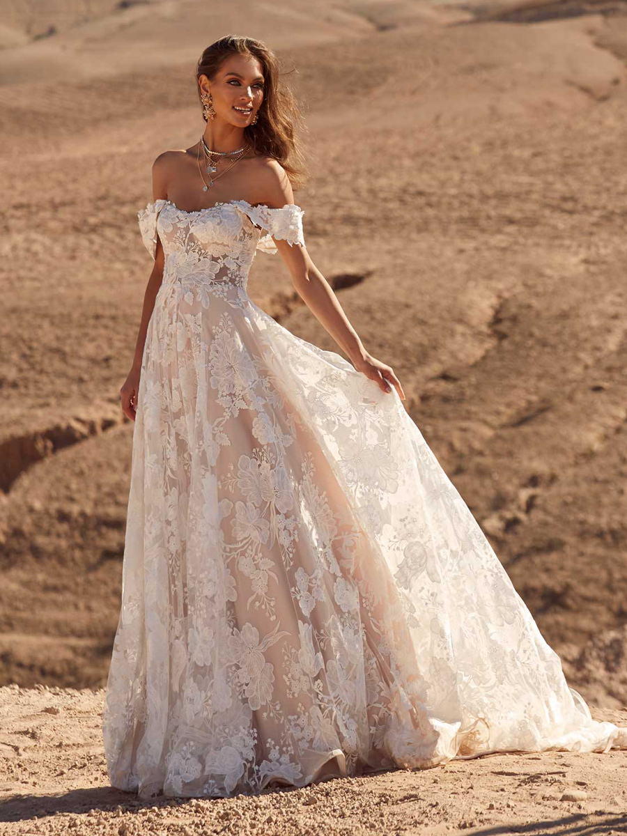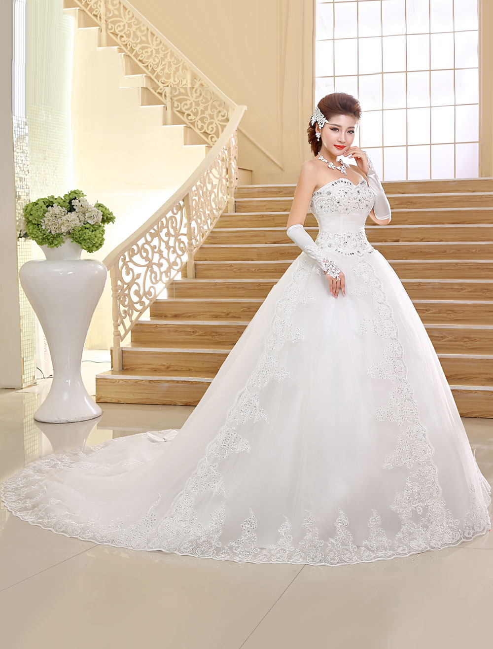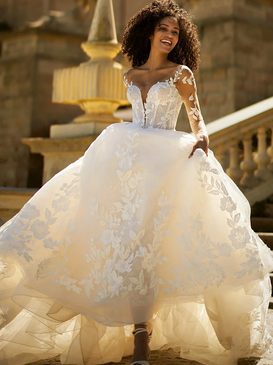 Wedding Bridal Gowns V-Neck Long Sleeves Natural Waist Lace Court Train Bridal